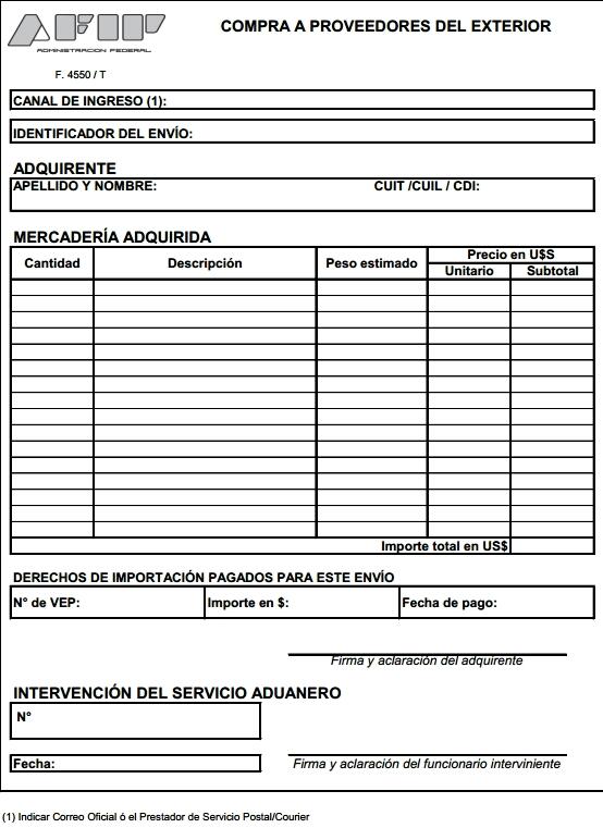El organismno exigirá la presentación de este formulario antes de retirar la mercadería del correo o recibirla en el domicilio. Si se superan los US$ 25 anuales deberá pagarse el 50% del valor del bien.