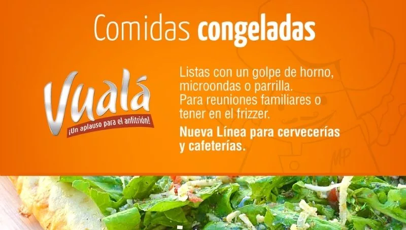 No pasó mucho tiempo en que estos mismos clientes comenzaron a pedir que se les envíen más pizzas frizadas, para reemplazar esas que habían quedado. Así nació Vualá, cuyo slogan no podía ser otro que “¡Un aplauso para el anfitrión!”, una línea de pizzas caseras frizadas, listas con un solo golpe de horno o parrilla de 10 a 15 minutos. Rápidamente esta línea llego tanto a los clientes de siempre como a negocios. Se incorporaron, menús, postres, sándwiches, pastas, y una amplia variedad de congelados pensada para estoquear el frizzer con comida casera y para aquellos comercios que buscaban una alternativa frizada de alta calidad para presentar en sus restaurantes o bares, o bien revender.