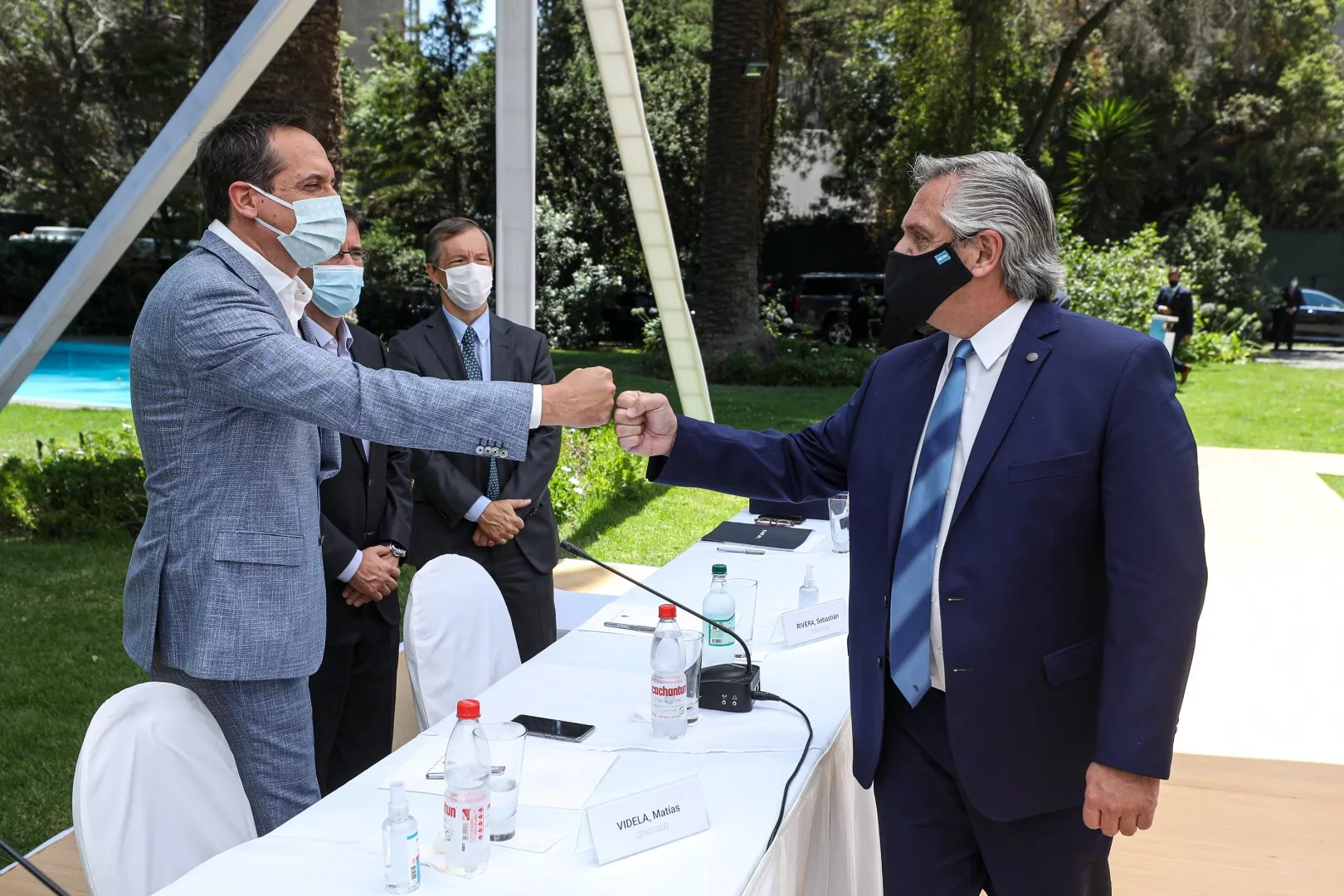 Según pudo reconstruir El Cronista por medio de varios participantes del encuentro celebrado en el patio de la residencia diplomática, Fernández trazó un crudo diagnóstico de la situación económica, en la que subrayó la "herencia" del gobierno anterior y las medidas restrictivas que debieron acentuarse desde diciembre de 2019 y, particularmente, desde que se declaró la emergencia sanitaria por el coronavirus.