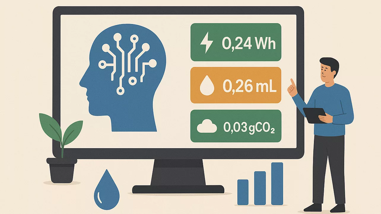 ¿Cuánta energía, agua y emisiones de carbono consume realmente cada pregunta que le hacemos a un modelo como Gemini de Google? Según datos recién publicados por la compañía, la huella por interacción es mucho menor a lo que se suele imaginar. En promedio, una consulta de texto a Gemini utiliza 0,24 vatios-hora de energía, emite 0,03 gramos de dióxido de carbono equivalente (gCO₂e) y requiere 0,26 mililitros de agua (unas cinco gotas). Para ponerlo en perspectiva, esto equivale a mirar televisión durante menos de nueve segundos.