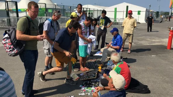 Ayudando al furor, la existencia de pines nuevos por los JJ.OO. hace que coleccionistas de todas partes del mundo se lleguen a los ingresos de los estadios para intercambiarlos.