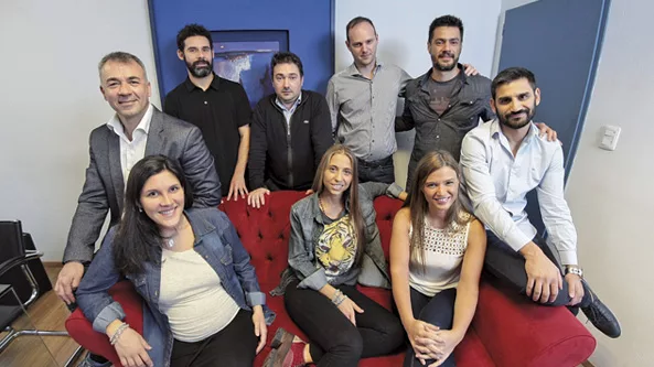 Atrás: Marcelo Maurizio, presidente; Diego Reviglio, director general creativo; Marcos Gallerano, director de cuentas; Lucas Sancho, supervisor de cuentas; Juan Pablo Bazán, director de marketing digital y Ricardo Puente, vice presidente. Sentadas: Yanina Dángelo, directora de administración, Silvina Defilippi, planificadora de medios y Valeria Durand, supervisora de cuentas.