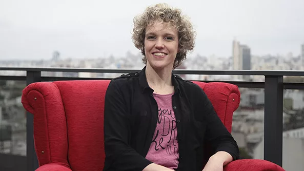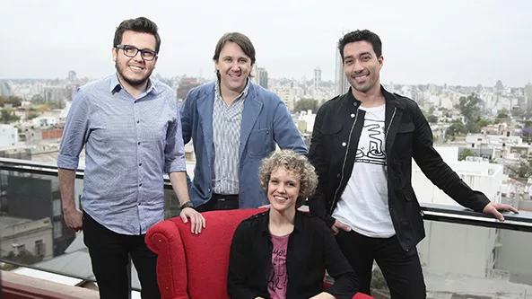 Juan Pablo Abratte, responsable del área digital; Germán Casado, director de cuentas; Rolando Arias, director. Sentada: Malvina Bertello, socia gerente. (Ausente con aviso de la foto: Marcos Marotto, director de arte).