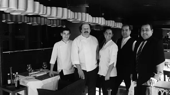 Facundo Tochi, jefe de cocina; Roal Zuzulich, chef ejecutivo; María Constanza Guala, pastelera; Héctor Darío Ávila, mozo y Marcelo Molina, sommelier.