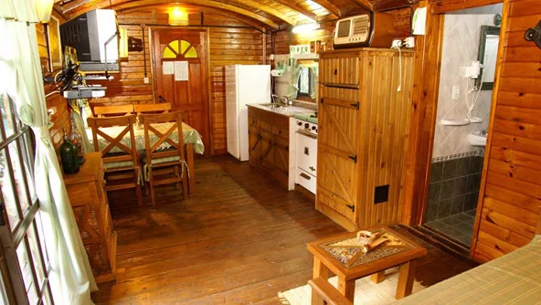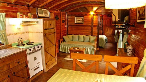 El primero fue bautizado vagón “Pinocho”, se trata de un vagón postal inglés original construido en 1890 con capacidad para tres personas. Fue restaurado y amueblado con el estilo de la época y cuenta con un agregado en material donde se ubicó el baño para poder instalar la cañería necesaria. “Como el lugar era reducido le saqué las puertas y organicé una alcoba con espacio para cama matrimonial, comedor, cocina, sofá cama, heladera y demás. Bien equipado”, nos cuenta el dueño, Jorge Cuba.