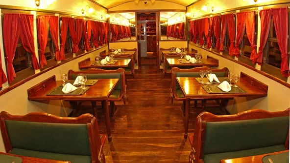 El vagón “Fitzcarraldo” es un restaurante dispuesto de la misma forma en la que estaban acomodadas las mesas y asientos en los trenes clásicos. Contiene ocho mesas con espacio para cuatro comensales en cada una. “En este furgón de cola entran 32 personas y tiene un encanto particular comer allí dentro porque parece intacto gracias al carpintero que trabajó allí”, agrega Cuba.