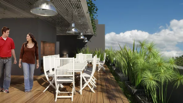 El techo, por su parte, se suma a la nueva tendencia de terrazas-patio y contará con césped natural jugando una suerte de jardín en pleno centro.