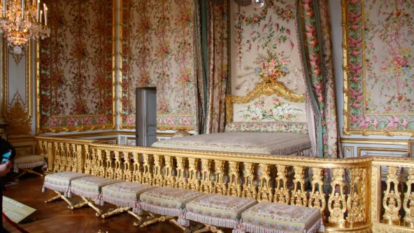 El lecho era la pieza central de la habitación a la que concurrían distintos miembros de la corte que tenían el "honor" de participar en el ritual de aseo y cambio de ropa de la delfina de Francia. Por esa razón, la cama está dispuesta de tal manera para que el "público" pudiera observarla con detenimiento y comodidad.