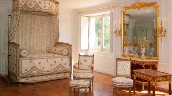 Las telas que cuelgan de la cama y de las paredes, se volvieron a tejer en Lyon a partir de los patrones originales conservados ya que fueron destruidas durante la revolución de 1789. La cama y la balaustrada, en tanto, se re-esculpieron a partir de documentos antiguos.