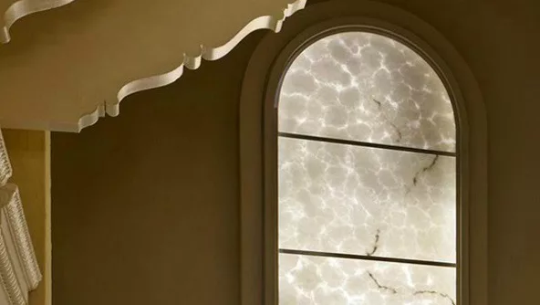 Y lo cierto es que las propiedades de la poliresina permiten que la luz artificial como la natural lo atraviesen generando así una particular iluminación y permitiendo que se aprecie más el diseño del “mármol”, pues, las vetas resaltan y los remolinos del yeso puro se notan a la perfección.
