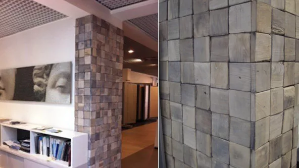 Una de las virtudes de estos adoquines de madera es la variación de tonalidades que generan diseños cálidos y originales.