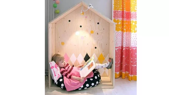 Los rincones de lectura remiten a escondites, una suerte de fuerte o castillos que armábamos de niños con sábanas. Por esta razón, muchos de estos espacio cuentan con “techos” y “paredes” con iluminación propia que se consigue a través de veladores o incluso luces de Navidad.