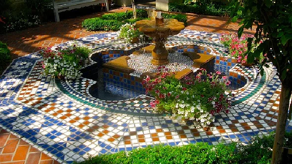 El piso, en tanto, suele estar pavimentado y en caso que no lo esté, se aplican contenedores de plantas para demarcar el área de tránsito con el espacio que ocupan las plantas. En todos estos casos, el cemento cuenta con apliques de cerámica vidriada, azulejos y demás piedras que combinan. “El punto principal es el ornamento, precisión en los detalles”, apunta Sombra.