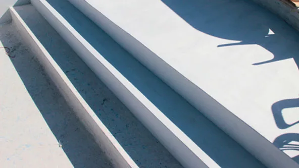 Agua de piedra” es un componente de base caliza, que no se resquebraja y adquiere una dureza especial en contacto con el agua. Puede aplicarse en piscinas nuevas (sobre la misma terminación que se deja para pintar) o sobre las ya pintadas, previo lijado con moladora y flaps, para remover los restos de pintura.