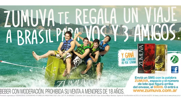 (Por María Mercedes Beracochea) Rombo Velox te invita a palpitar el verano con esta promo, realizada para su cliente Vinos Zumuva de Fecovita Coop, que arrancó su fuerte difusión nacional este fin de semana. La misma culmina con el sorteo de un viaje a Brasil para 4 amigos, pero también hay sorteos semanales de filmadoras HD.