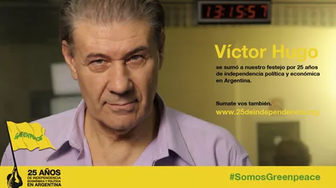El spot se ha elaborado con motivo del 25 aniversario de Greenpeace y se difunde en la Red a través de su canal en YouTube y perfiles en redes sociales y masivamente en tv y avisos gráficos (fotos) con las caras de los protagonistas.