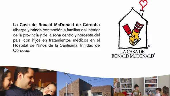 La agencia tiene en su cartera de clientes a la cadena de fast food y desde hace 4 años que apoya el trabajo de la casa de Ronald McDonald en Córdoba; incluso una de las habitaciones de la casa lleva el nombre de la agencia, junto a importantes empresas del país.