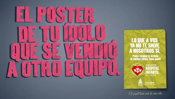 Es el eslogan de la nueva campaña creada por la agencia cordobesa para la Asociación Hospital Infantil, que consta de un aviso para tv y tres de vía pública en los que te dicen, con mucho ingenio, que el papel que ya no te sirve más le puede servir a otros. La movida se encarna en la “Campaña Papel Solidario”.