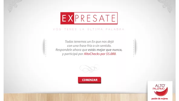 Además, y como continuación de esta gran idea de Y&R, el shopping lanzó una promo en su fanpage de Facebook llamada “EXpresate”, a través de la cual podés ganarte $ 5.000 en órdenes de compra en el centro comercial. En la aplicación sólo tenés que contar con que excusa te dejó tu ex y ya estás participando. Tenés varias para elegir: “No tenemos futuro juntos”, “Quiero dedicarme a mi carrera”, “No vas a ser felíz conmigo”, “No sos vos, soy yo” y muchas más.