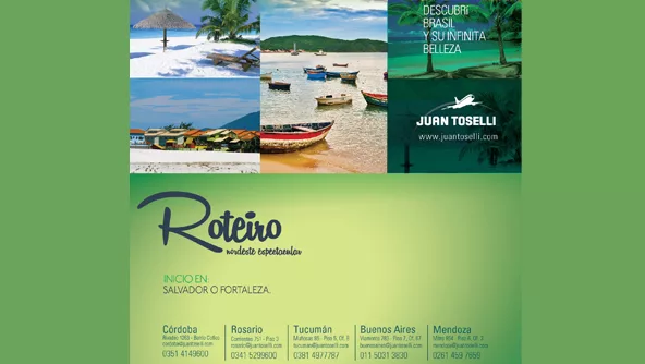 (Por María Mercedes Beracochea) El mayorista de viajes Juan Toselli International Tours encomendó a la agencia que dirige Marcelo Maurizio la renovación general de la estética de promoción de sus destinos, alcanzando esta tarea a su comunicación institucional y los avisos comerciales. Para ello la agencia realizó una colorida propuesta que podés ver en detalle en nota completa.
