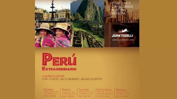 Cuba, Brasil, Perú y muchos más, son destinos atractivos por excelencia, pero ¿cómo presentarlos a un viajero que no sabe por cuál decidirse y no conoce aún ninguno? Con mucho color, buenas fotos y frases atractivas, la gente de Mate logró el objetivo de exponer avisos vistosos para los clientes de Toselli.