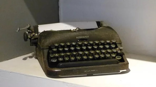 En unas de las salas de la agencia se pueden apreciar más objetos antiguos, como la -vieja y querida Remington-.