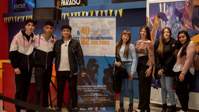 Con dos funciones a salas llenas (560 espectadores) se estrenó el documental “A 40 del 82. ``Deconstruyendo Malvinas”, una producción audiovisual de los estudiantes de sexto año promoción 2022 del IPEM 294 de la Orientación en Comunicación.