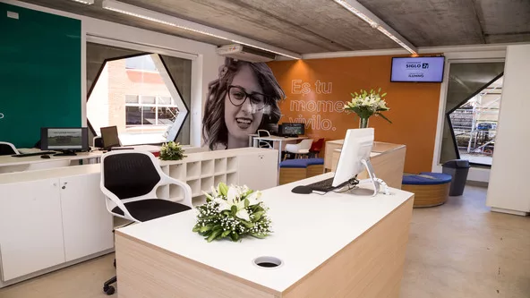 1° Piso: Centro de Coworking. Se trata de un espacio para vivenciar y experimentar los procesos de desarrollo de negocios y trabajo colaborativo, potenciando la transversalidad del emprendedurismo. Será un espacio de trabajo para el desarrollo de proyectos que albergará el Centro de Emprendedurismo de La Siglo 21.
