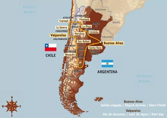 Si no te vas de vacaciones y te quedás en el país entre el 3 y el 18 de enero, los organizadores del Dakar 2009 te prometen adrenalina en cantidad. Para eso diseñaron una vuelta de 9.000 kilómetros (con 6.000 de especiales) que arranca en el Obelisco de Baires. De ahí los pilotos tomarán hacia el sur (por los llanos de la Patagonia), cruzarán la cordillera de los Andes hasta Chile y aprovecharán un día de descanso en Valparaíso, al borde del Océano Pacífico. Para pegar la vuelta agarrarán por el desierto de Atacama y después empalmarán por Catamarca, La Rioja y Córdoba hasta volver a Buenos Aires.