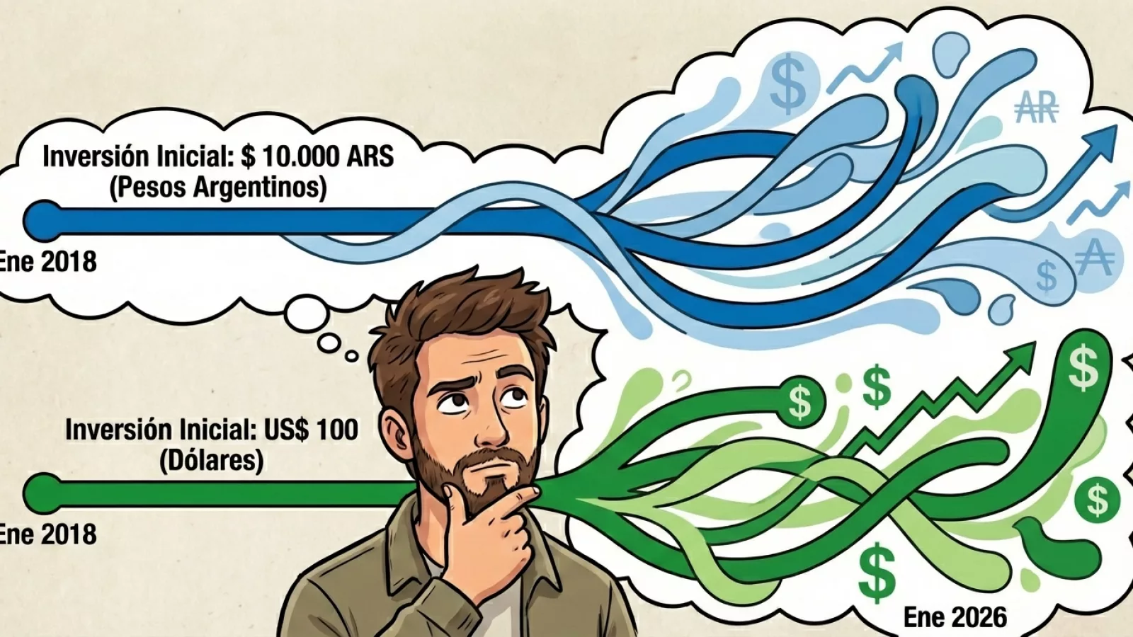 El análisis en moneda dura muestra un escenario distinto. Si la inversión inicial hubiera sido de US$ 100, los resultados fueron más acotados:
