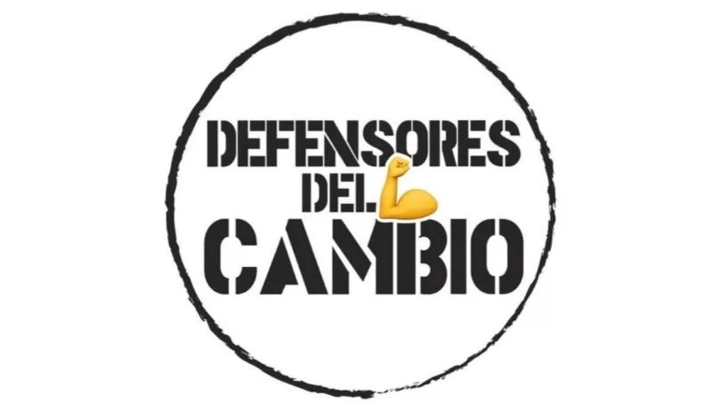 Aparentando una estética casera, Defensores del Cambio pivotea sobre el emoticon del brazo fuerte que simboliza una actitud de optimismo o “poner garra” a algo.