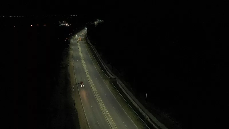 Las luminarias instaladas son LED de 180 vatios de potencia y 27.000 lúmenes cada una, acordes a las normas vigentes para este tipo de calzada.